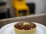 O encontro entre terroir e técnica: tartelete de castanhas ao creme, coberta com caramelo de café especial da serra da Mantiqueira. O resultado é uma sobremesa com textura sedosa e em paleta de cores que remete aos famosos cafés de torra média-clara de nossa cidade. Surpreenda-se com as camadas dessa deliciosa harmonização de sabores e texturas autênticas do Brasil. Uma sobremesa elegante e marcante, como Maria da Fé. Combina com os 365 dias do ano.